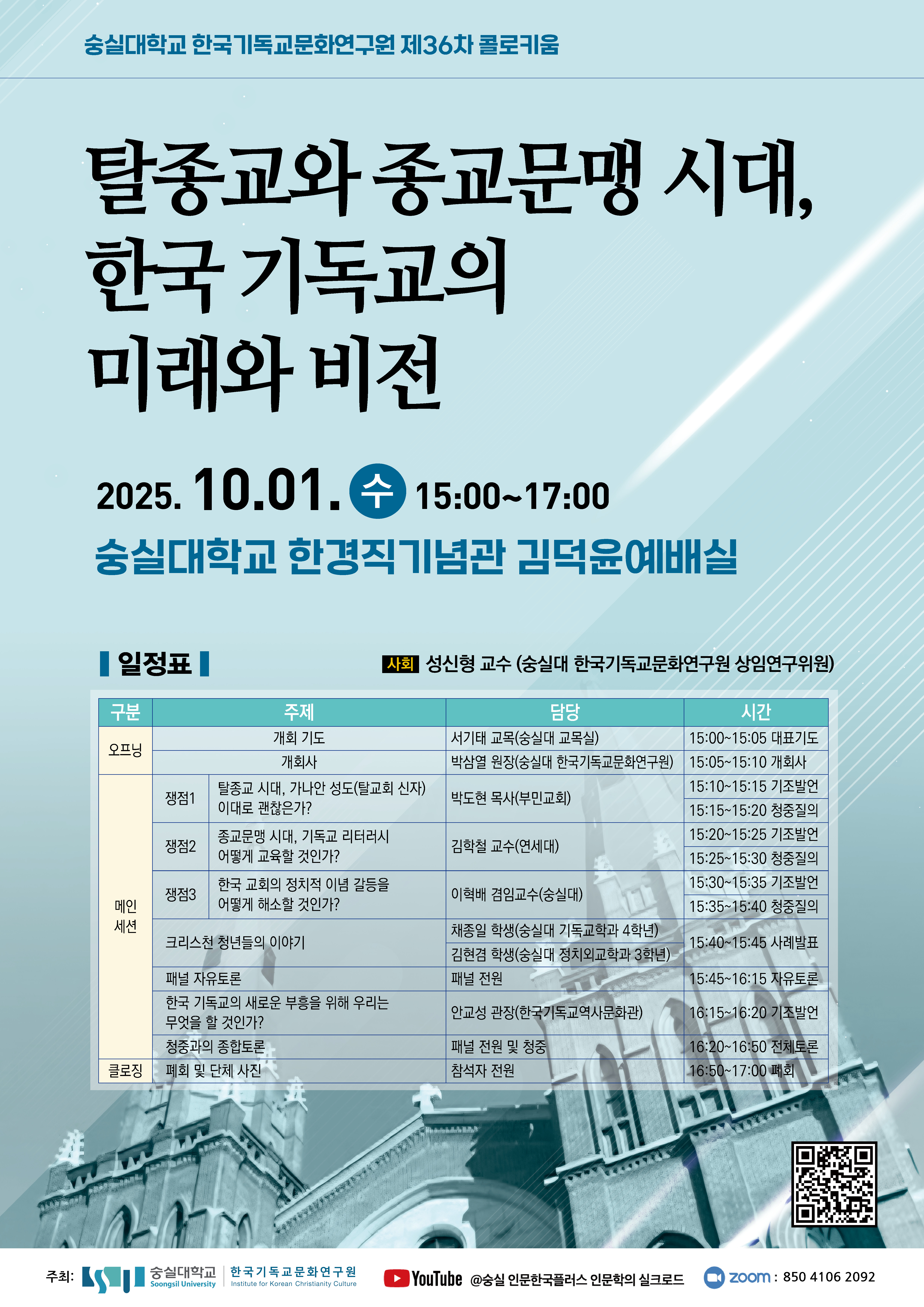 '탈종교와 종교문맹 시대, 한국 기독교의 미래와 비전'이라는 주제로 제36차 콜로키움을 개최합니다.